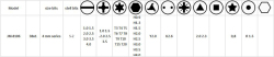 | отвертки/биты | Hex | H0.9 H1.3 H1.5 H2.0 H2.5 H3.0 H3.5 H4.0 |